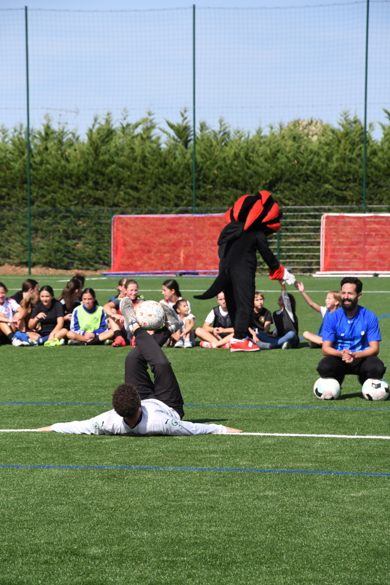 Clément et Norman, champions de France de freestyle, ont offert une initiation pour nos jeunes lincencié.e.s ainsi qu'une démonstration de foot freestyle pour un public venu nombreux !