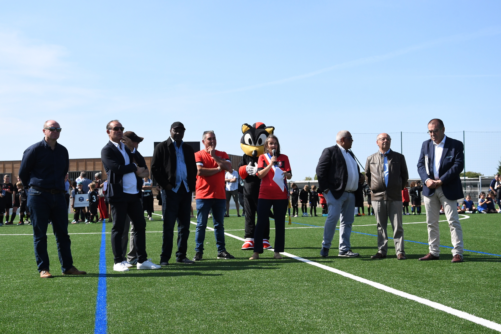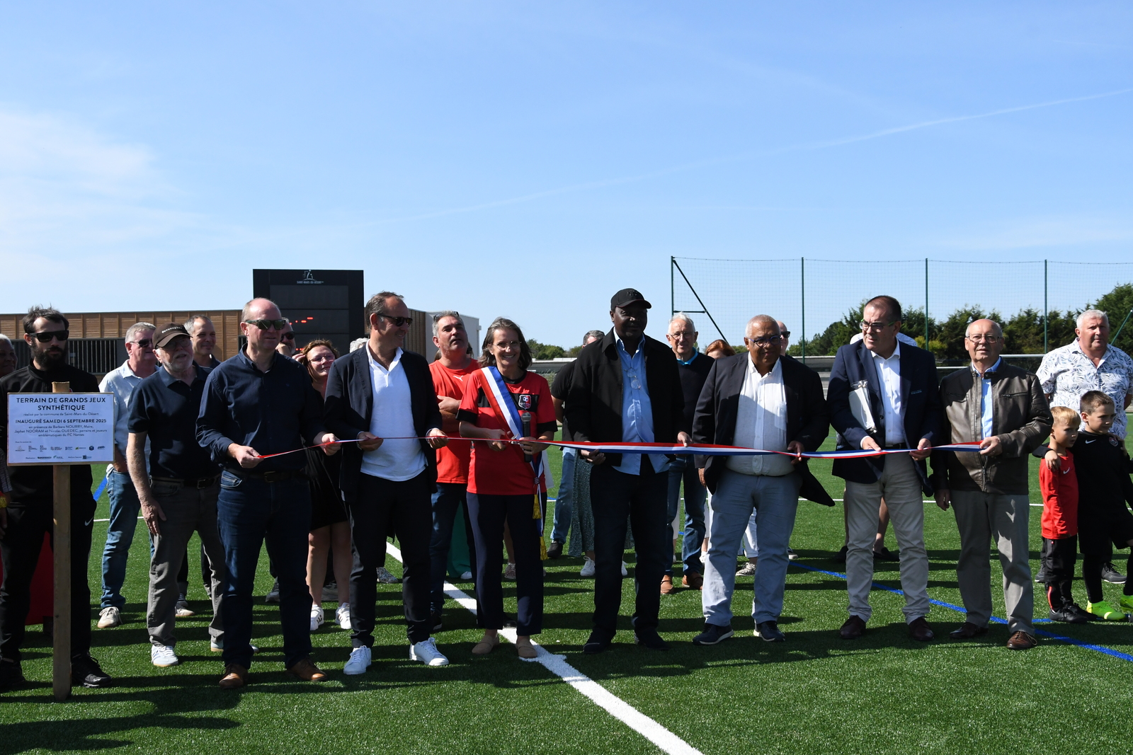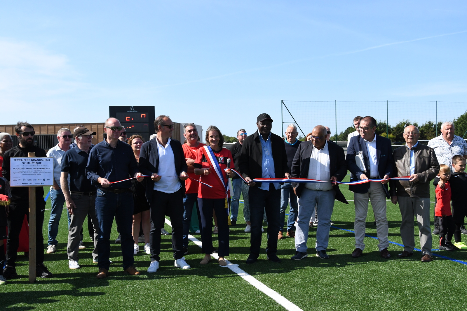 La municipalité de St Mars du Désert a inauguré le nouveau terrain de grands jeux synthétique avec deux parrains emblématiques : Japhet N'Doram et Nicolas Ouédec, anciens joueurs du FC Nantes.