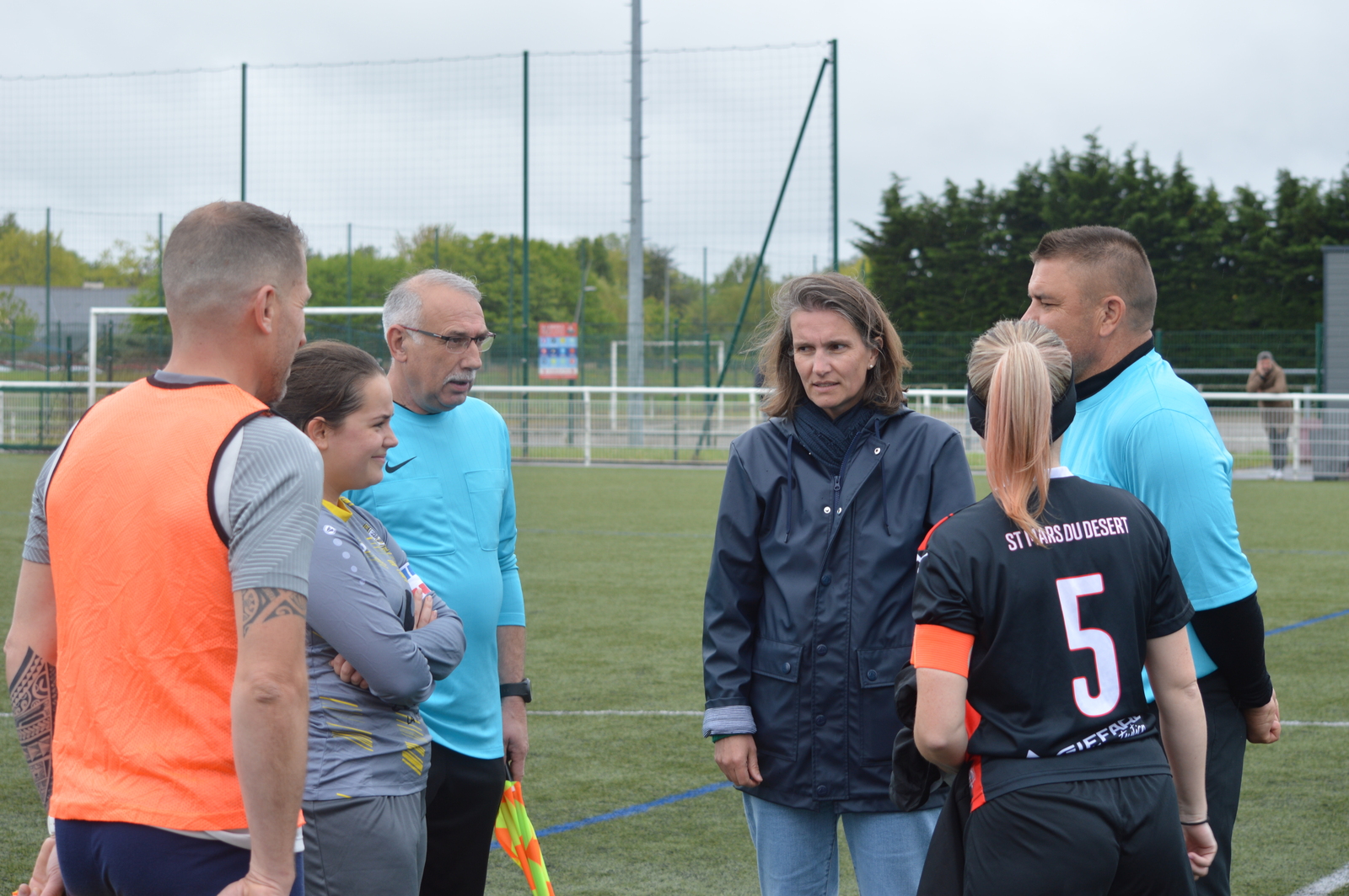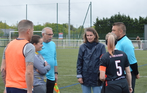 La météo n’a pas été de la partie mais la journée a été festive avec les jeunes licencié(e)s qui ont accompagné fièrement les joueuses pour l’entrée sur le terrain, le coup d’envoi donné par Mme Nourry (maire de St Mars du Désert), une tombola et une bourriche.