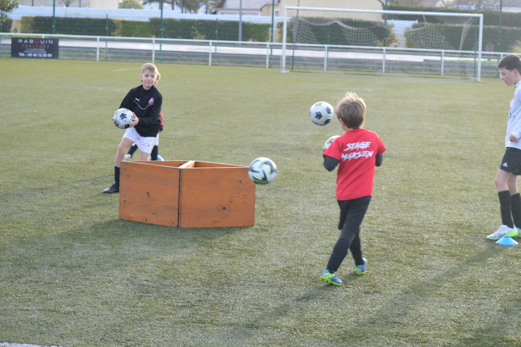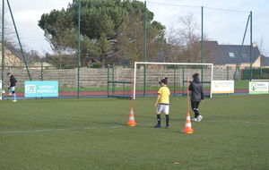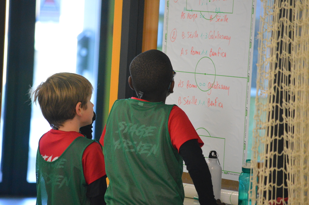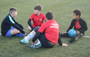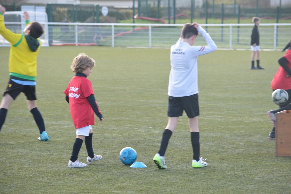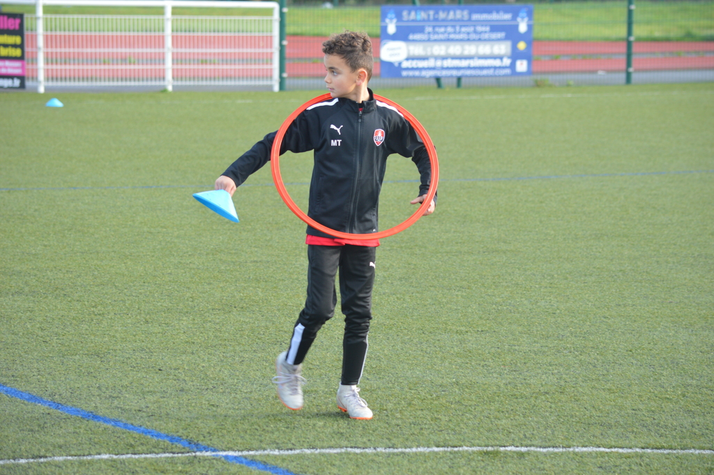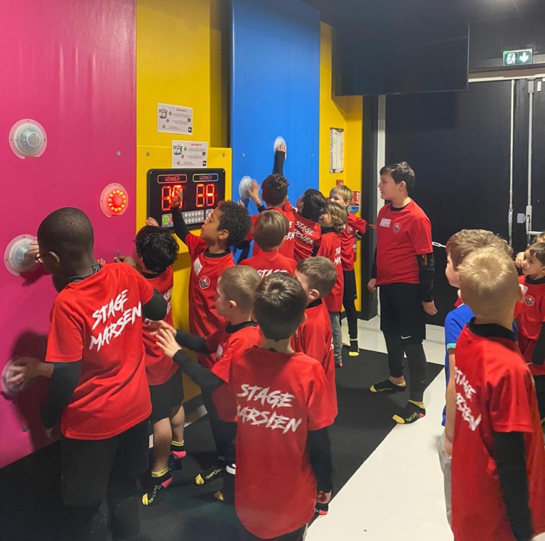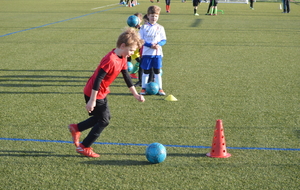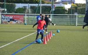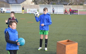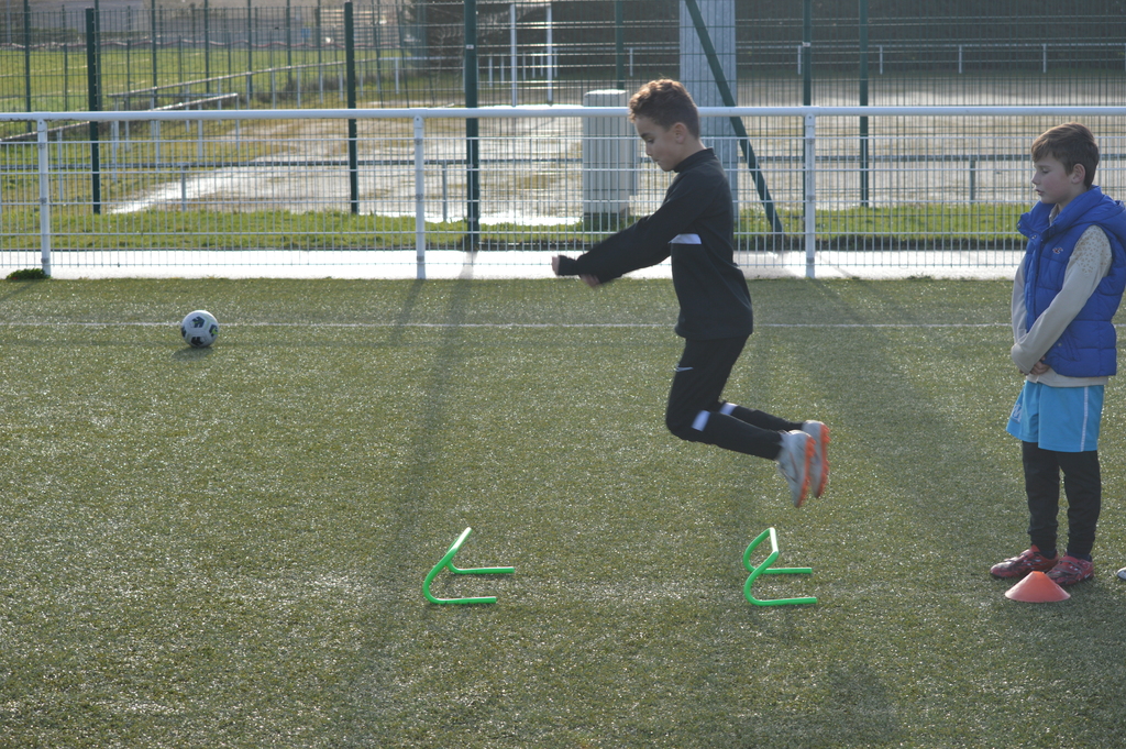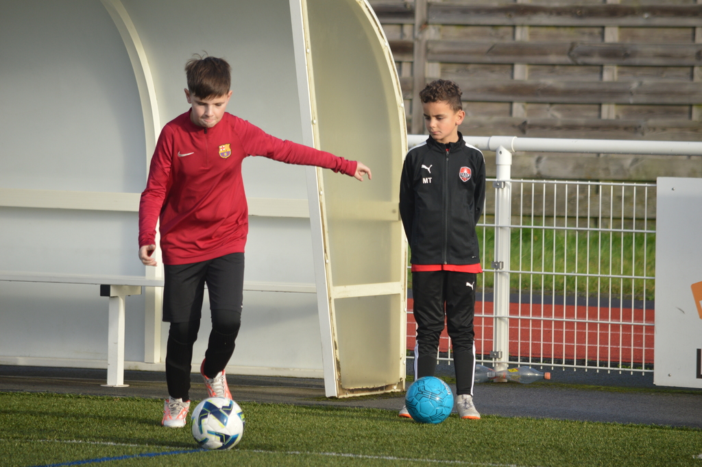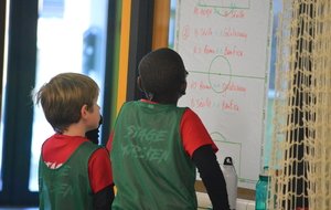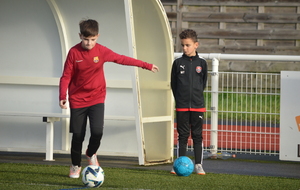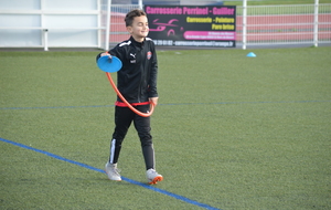 Par binôme - U6 U7 avec U10 U11 et U8 U9 avec U12 U13 - nos stagiaires avaient pour objectif de réussir cinq défis techniques installés sur le terrain de La Verdière afin de pouvoir répondre à une question de culture générale. Si le binôme répondait correctement, il remportait un point bonus.