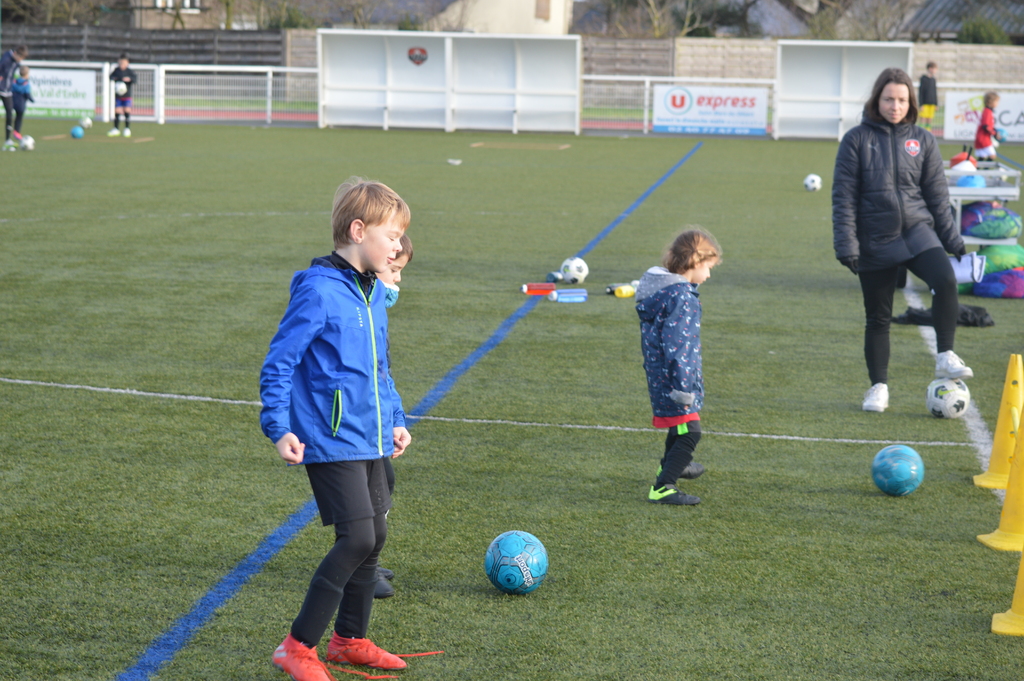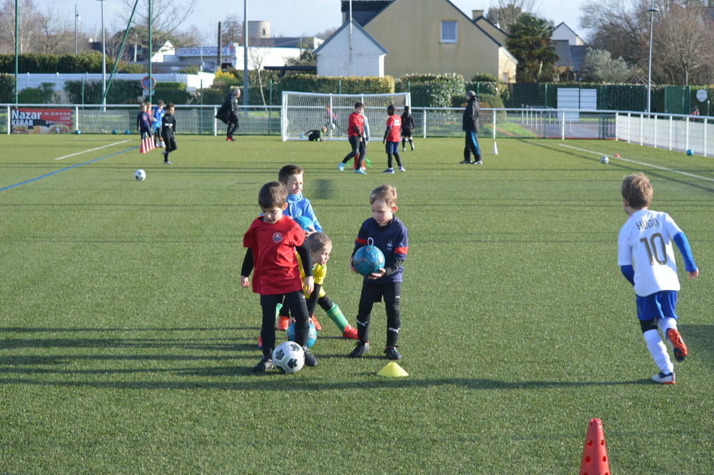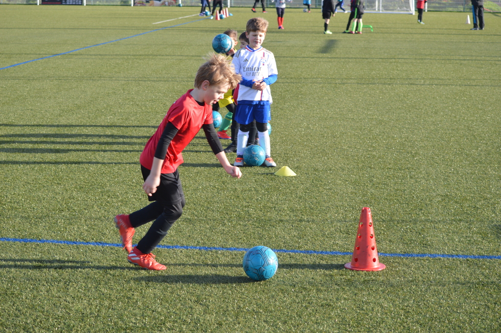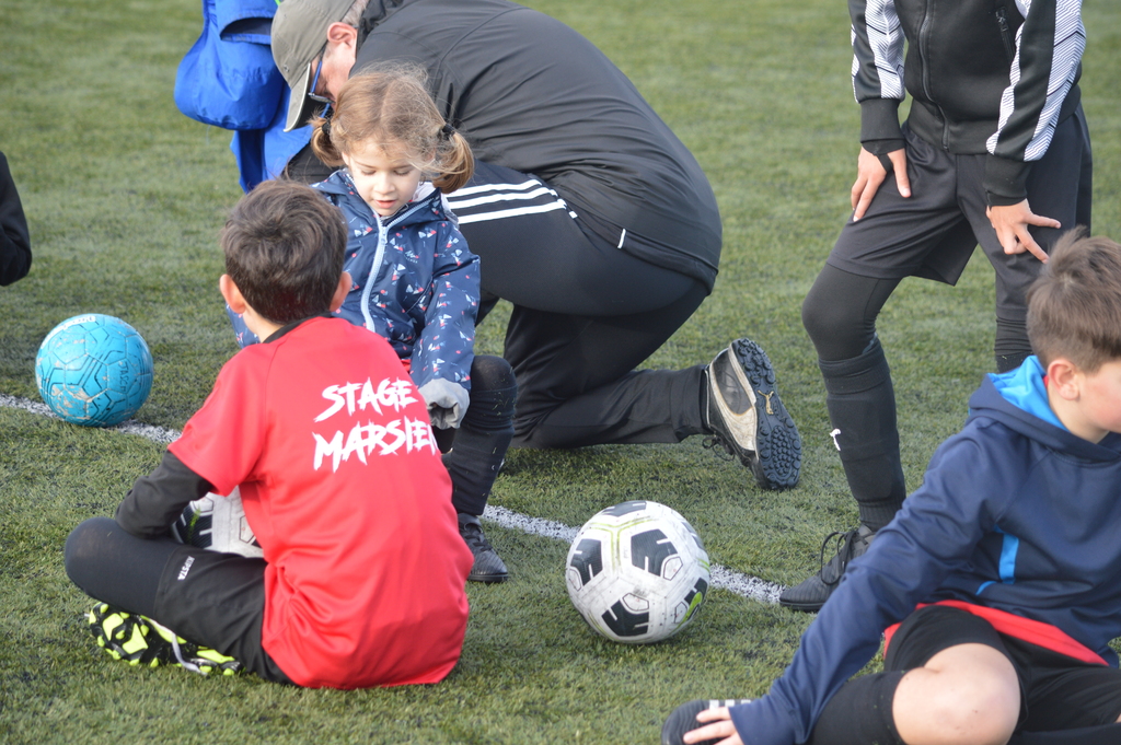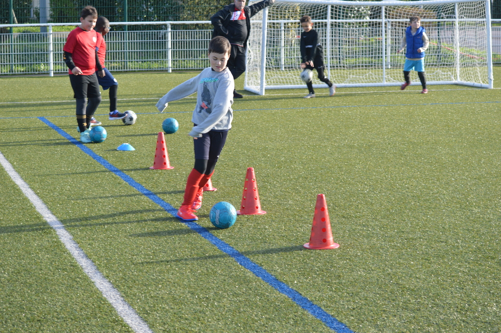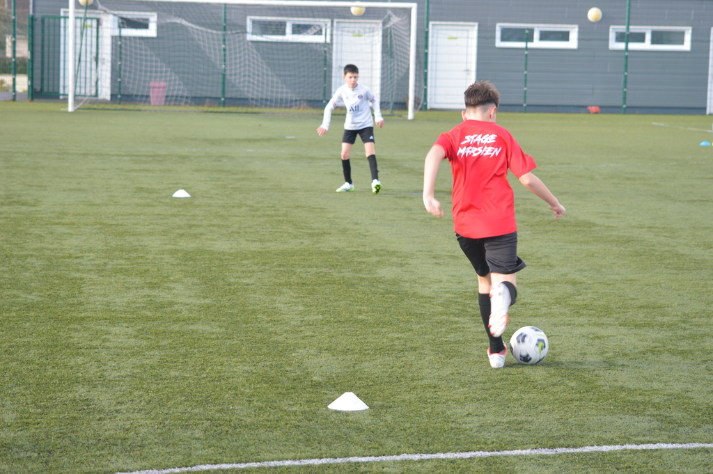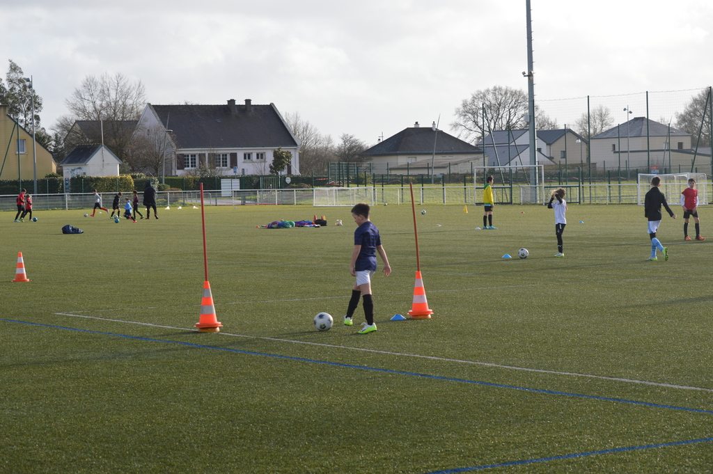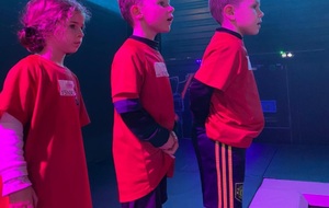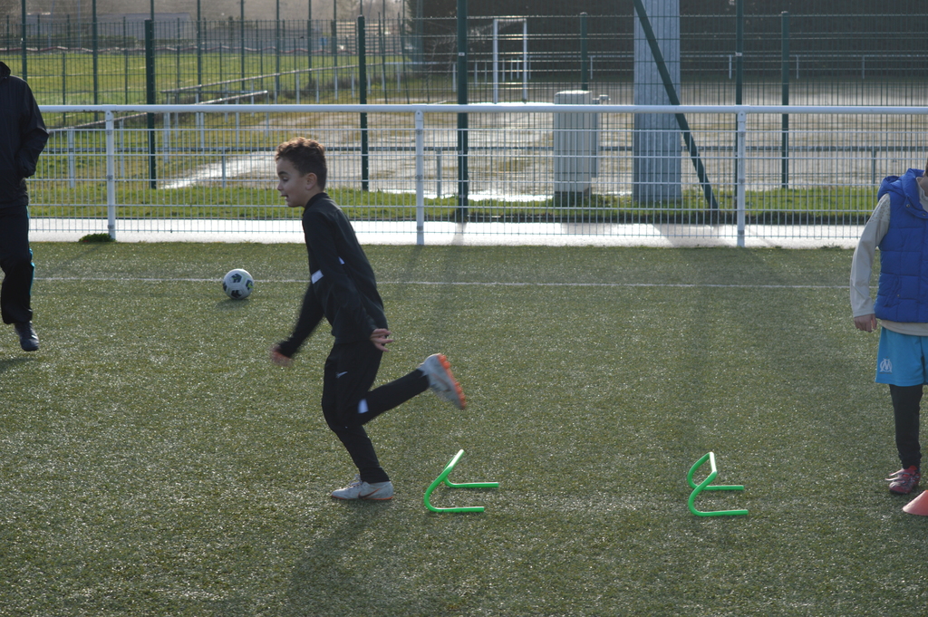 Par binôme - U6 U7 avec U10 U11 et U8 U9 avec U12 U13 - nos stagiaires avaient pour objectif de réussir cinq défis techniques installés sur le terrain de La Verdière afin de pouvoir répondre à une question de culture générale. Si le binôme répondait correctement, il remportait un point bonus.