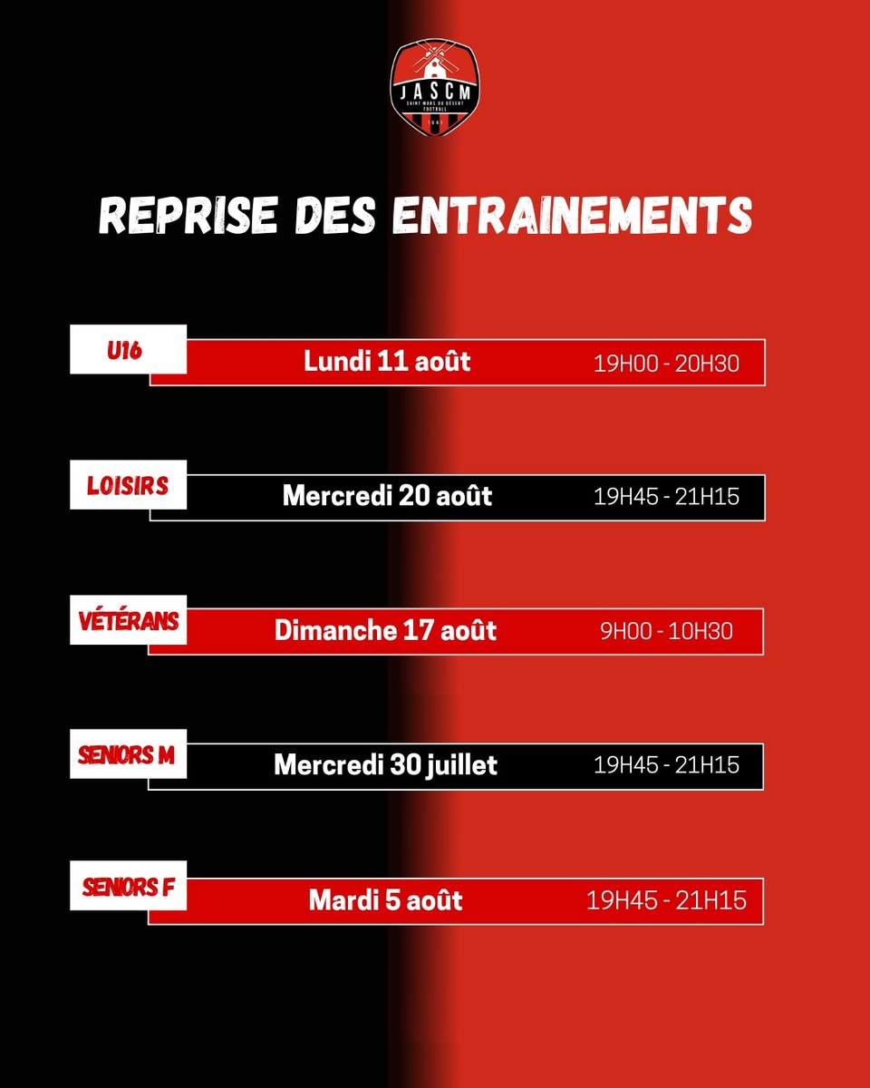 Dates de reprise d'entraînement de chaque catégorie
